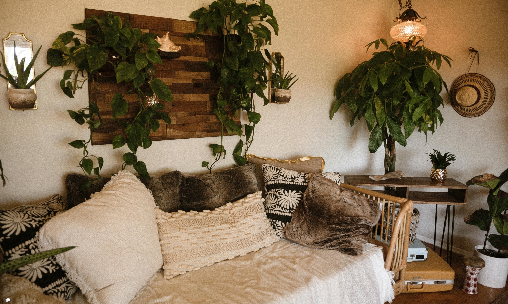 Pflanzen machen Räume lebendig. Schon eine große Pflanze oder ein kleiner Strauß verändert die Stimmung. Wenn du keinen grünen Daumen hast: robuste Optionen oder eine Vase mit Zweigen. Naturmaterialien (Holz, Keramik, Leinen) wirken automatisch wärmer als zu viel Plastik oder Hochglanz.